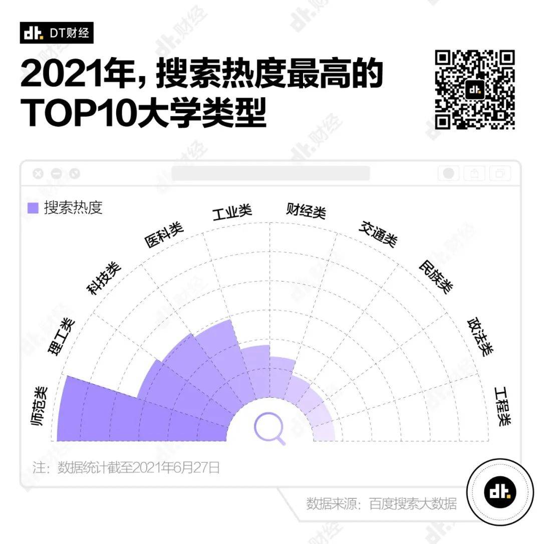 在填报志愿的过程中,除了综合类大学,不同特色的学校之间也有比较显著的热度差异。比如2021年搜索热度最高的,分别是师范类、理工类和科技类大学。