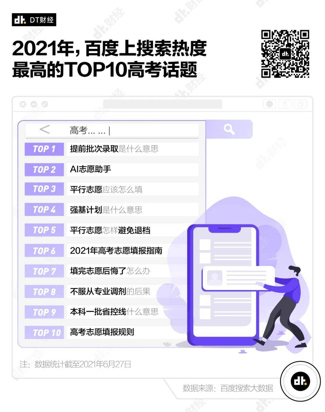 2021年,热度最高的TOP10高考话题中,“提前批次”“平行志愿”“本科一批省控线”等专业名词构成的知识点科普,占据了不少篇幅。虽然不一定所有人都能被提前录取,但说不定高考时候就超常发挥了——说到底,谁家过年不吃顿饺子呢?