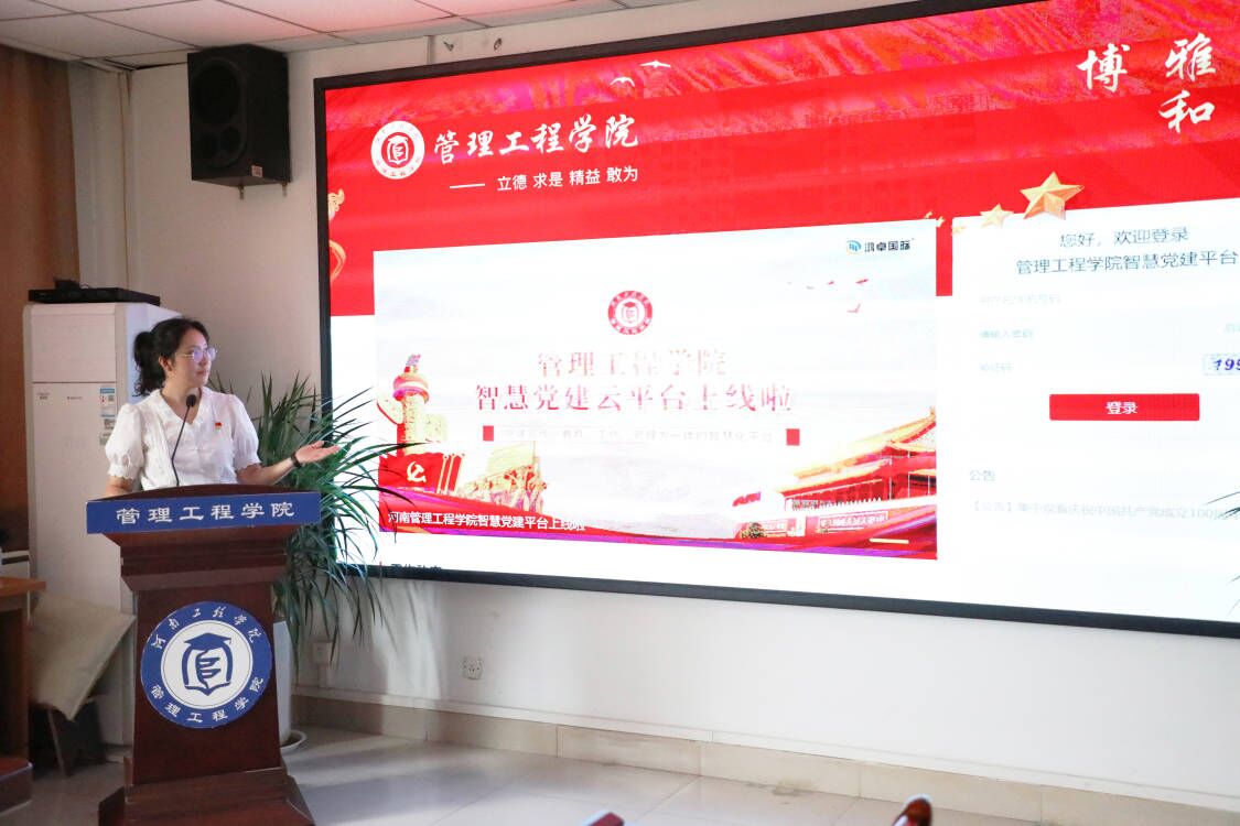 2021年7月1日下午,在全国上下欢度中国共产党百年华诞之际,管理工程学院智慧党建云平台正式启用。校党委副书记袁静波、组织部副部长、党校校长黄玉、鸿卓电子商务学院院长郭兵兵、副院长孙江涛和管理工程学院班子及师生党员代表出席了启用仪式。仪式由李红艳主持。